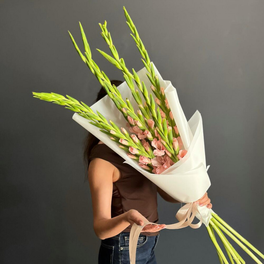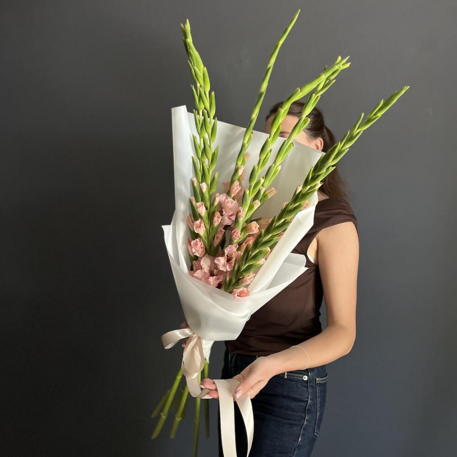 Лента атласная - 1 шт. Гладиолус - 7 шт. Авторская упаковка - 1 шт.